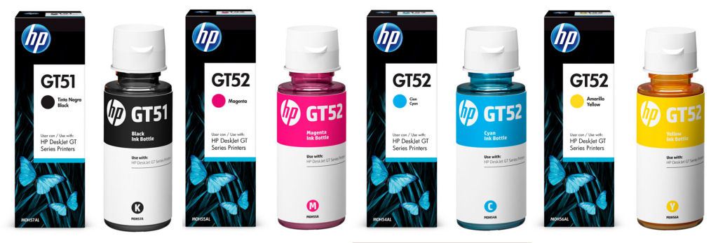 Com relação aos consumíveis, a HP apresentou quatro frascos de tinta, o GT51 preto de 90 cc (ou ml) com autonomia estimada de ~5 mil páginas e o GT52 Magenta/Ciano/Amarelo de 70 cc cuja autonomia (média e combinada) é de ~8 mil páginas. Um kit completo já acompanha o produto e os frascos para reposição de tinta têm preço sugerido de R$ 59,90 cada um, não importando qual seja a cor, e são vendidos separadamente.